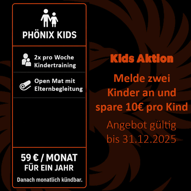 Im Phönix Fightclub Kindertraining lernt dein Kind echten Kampfsport – spielerisch, sicher und mit System. Wir vermitteln reale Techniken in einer Light-Version, ohne Schläge zum Kopf und mit großem Fokus auf Kontrolle. So trainiert dein Kind mit Partnern, stärkt Körpergefühl, Reaktion und Selbstvertrauen. Können ist die beste Prävention – wer weiß, wie man sich verteidigt, strahlt Sicherheit aus. Gleichzeitig fördern wir Respekt, Disziplin und Teamgeist, damit dein Kind stark wird – körperlich und charakterlich.